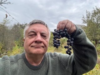 Многие продвинутые виноградари Лабруску, американский подвид винограда и за виноград не считают, но я им весьма доволен! С двух кустов, которые были изначально посажены в декоративных целях: прикрыть стену домика и фронтон сарая, в этом году 8 ведер. Не считая того, что дрозды склевали. То есть по 4 ведра мелкой, костлявинькой, изабелльного типа ягод. И это при отсутствии какого-то ухода и зимних укрытий. Лишь поздно осенью надо секатором нещадно усмирять буйный характер безымянного сорта лабруски.