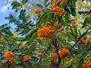 Можно поискать в питомниках Невеженскую желтую, Огонек, Вефед, Отем Спайр (листья осенью просто фантастические!). Все эти рябины не только очень декоративны, но и вполне съедобны! А я в питомнике не покупал. Заметил, понравившуюся, весной срезал черенок и привил. Делов-то...